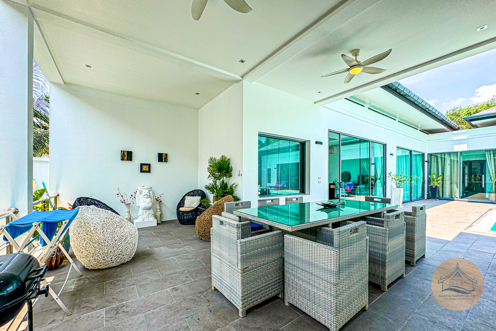 This elegant four-bedroom pool villa offers generous living spaces and a well-balanced layout designed for comfortable tropical living. Completed in 2012 and set on a 760 sqm land plot with a built-up area of 560 sqm, the property offers comfort in peaceful surroundings.